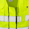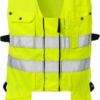 High vis gecertificeerd vest met verstelbare breedte, zodat het zowel over zomer- als winterjacks kan worden gedragen. Het vest kan ook worden gemaakt met een opening in de achterzijde voor veiligheidsgordels.